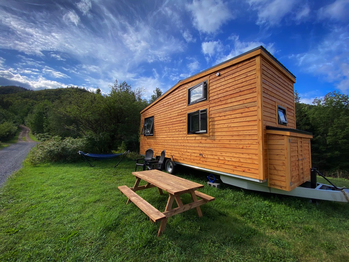 This is the top pitch with water, but without electricity. The pictured Tiny House is sold but don’t hesitate to contact us if you would like own one ..